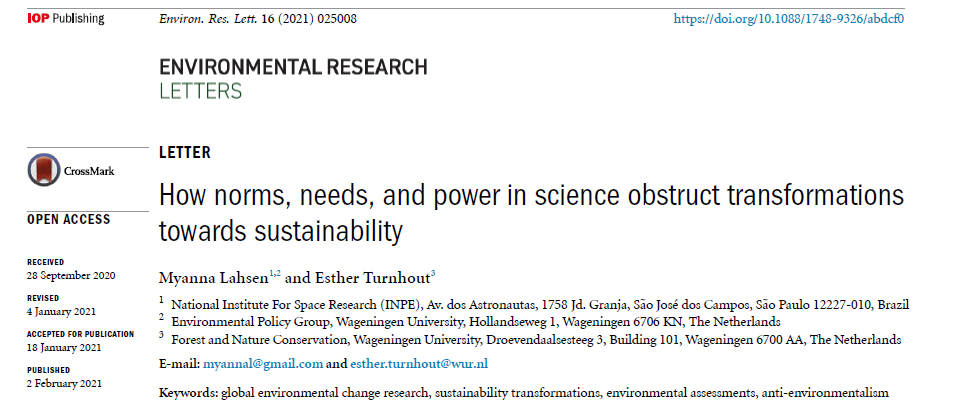 New article calls attention to how logics of research communities need to be examined and changed to improve the usefulness of research for sustainability transformations.