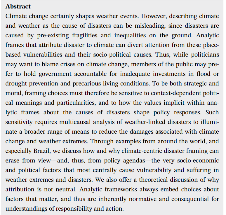 For a popular news article by myself and Jesse Ribot in Advanced Science News on the politics of attributing disasters to climate change, see the image below of an article accessible here.